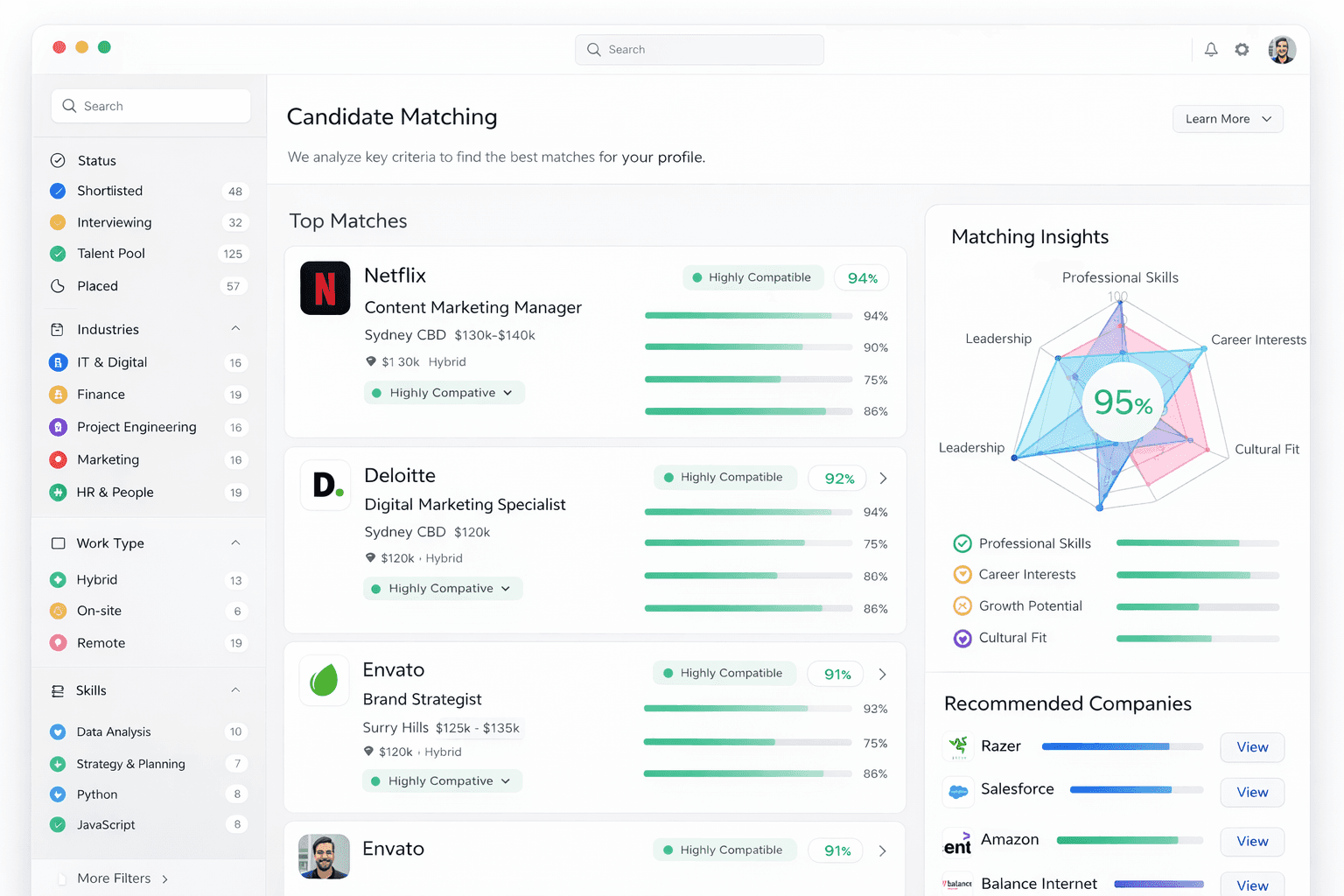 We invest significant time understanding you as a person before ever discussing specific opportunities. Our success is measured by your satisfaction two years later, not how quickly we fill roles.